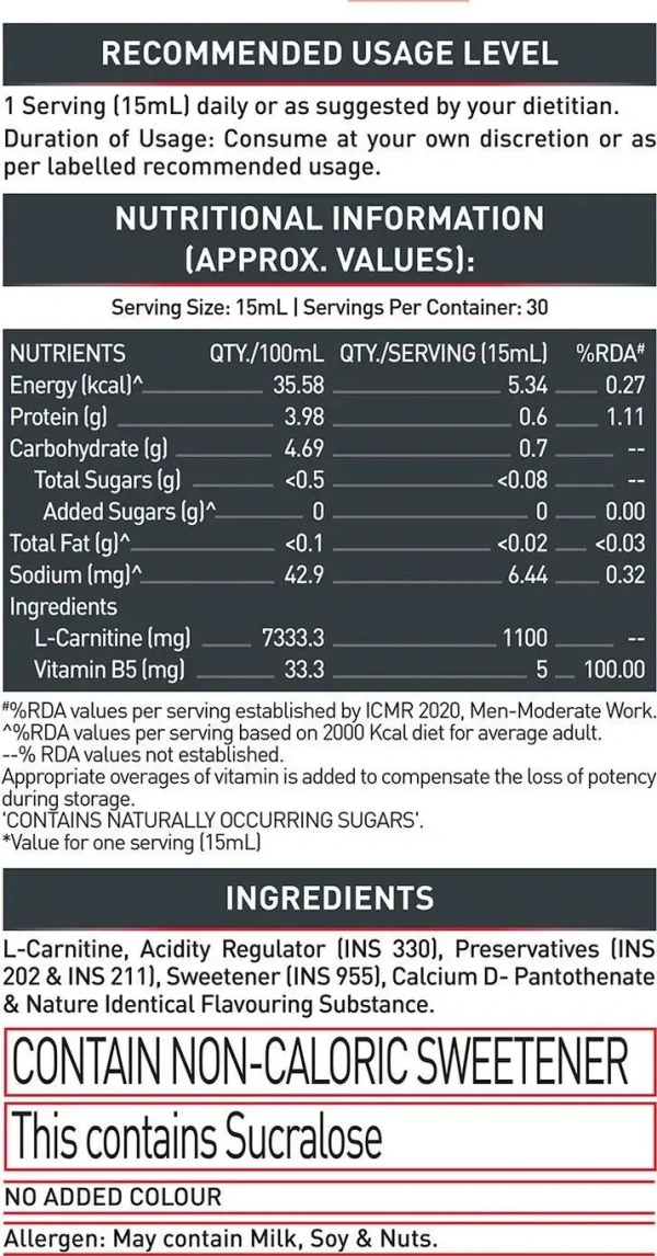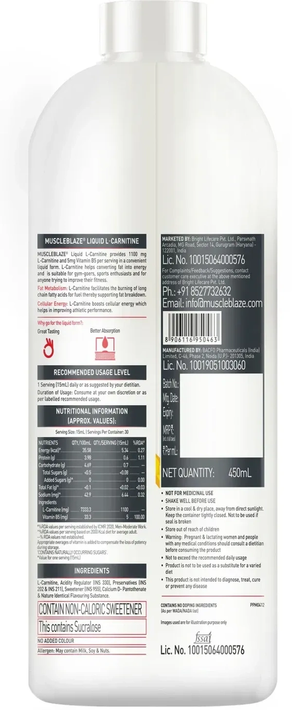MUSCLEBLAZE Liquid L-Carnitine 1100 mg, Helps Convert Fat into Energy