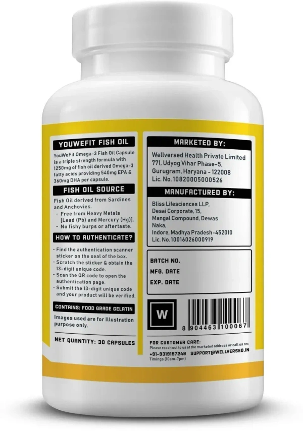 YouWeFit Omega-3 Fish Oil (30 Capsules), 1250mg